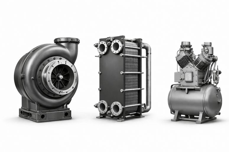 pumps, compressors, valves, and hydraulic components